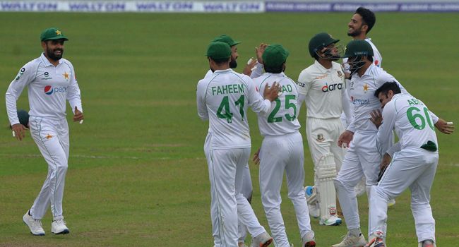 এর আগে চতুর্থ দিনের প্রথম সেশনের এবাদত হোসেন ও খালেদ আহমেদ এর দাপুটে বোলিং শুরুতেই সাজ ঘরে ফিরেন আজহার আলী ও পাকিস্তান দলপতি বাবর আজম। তবে ফের ব্যাটিং দৃঢ়তা দেখিয়ে পঞ্চম উইকেট জুটিতে ব্যাট হাতে রীতিমতো শাসন করতে থাকেন দুই পাকিস্তানি ব্যাটসম্যান মোহাম্মদ রিজওয়ান এবং ফাওয়াদ আলম।