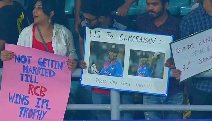 তবে চেন্নাই-বেঙ্গালুরু ম্যাচে মাঠে চোখ ধাঁধানো শট কিংবা অবিশ্বাস্য ক্যাচে ক্রিকেটাররা সকলের নজর কাড়েও মাঠের বাহিরে গ্যালারিতে এক অভিনব ব্যানার এনে ভাইরাল হলেন এক তরুণী। তার ব্যানারে লেখা ছিল ‘আরসিবি আইপিএল না জেতা পর্যন্ত বিয়ে করছি না’। ম্যাচ চলাকালীন টিভিতে এই দৃশ্য দেখানোর সঙ্গে সঙ্গেই ভাইরাল হয়ে যান ওই নারী ভক্ত।