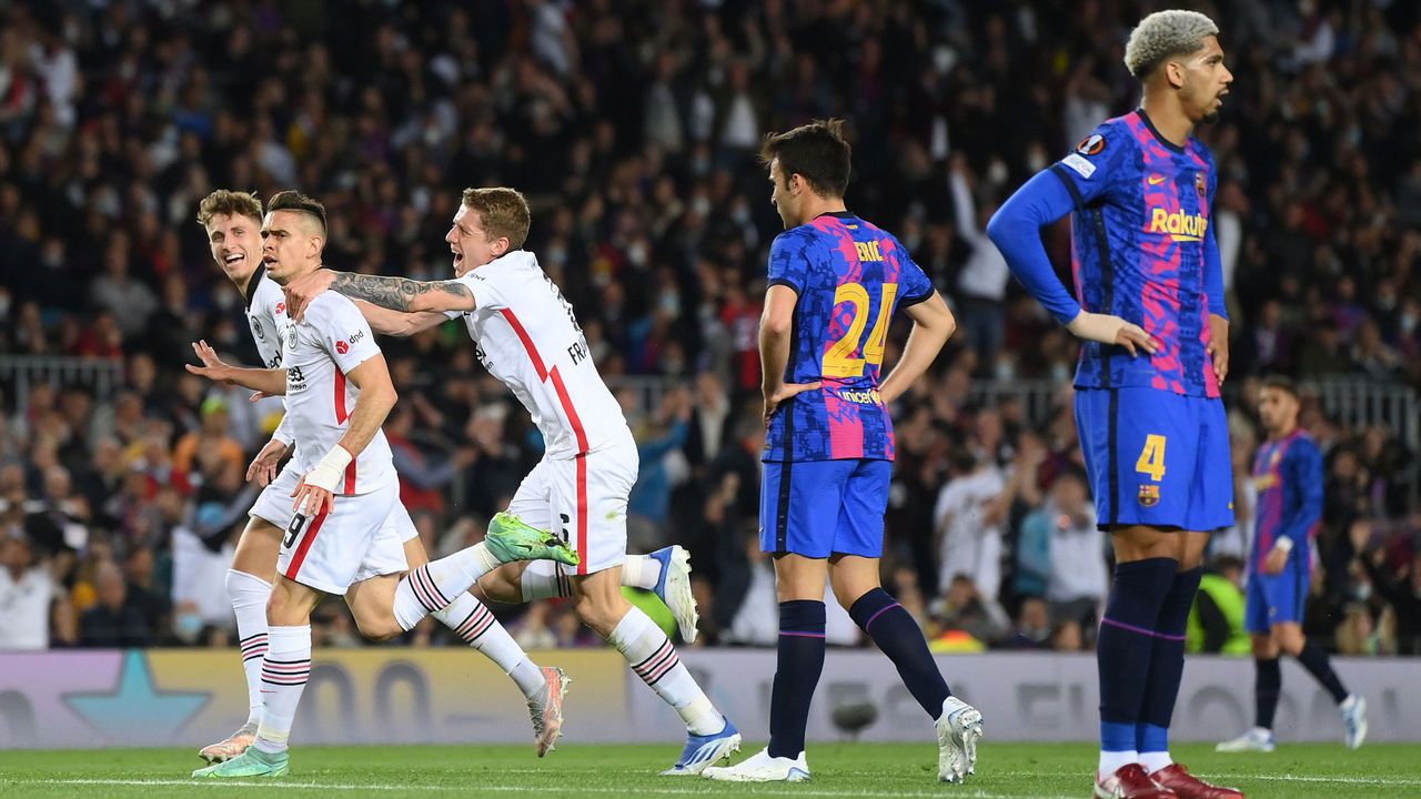 ন্যু ক্যাম্পে বৃহস্পতিবার রাতে ইউরোপা লিগের কোয়ার্টার ফাইনালের ফিরতি লেগে বার্সেলোনাকে ৩-২ গোলে হারিয়ে দিয়েছে জার্মান ক্লাব ফ্রাঙ্কফুর্ট। প্রথম লেগ ১-১ গোলে ড্র হওয়ায় দুই লেগের অগ্রগামীতায় ৪-৩ গোলে জিতে সেমিফাইনালে জার্মান ক্লাবটি।