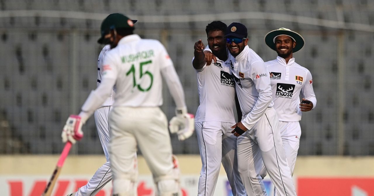 এর আগে অ্যাঞ্জেলো ম্যাথিউজ ও দিনেশ চান্দিমালের জোড়া সেঞ্চুরিতে ভীষণ বিপদে ছিল বাংলাদেশ। দিনের প্রথম দুই সেশন নির্বিঘ্নে কাটিয়ে দিয়েছিলেন এ দুই অভিজ্ঞ লঙ্কান ব্যাটার। সেখান থেকে শেষ সেশনে দারুণভাবে ঘুরে দাঁড়িয়েছে টাইগাররা। লঙ্কানদের শেষ ৫ উইকেট তারা তুলে নিয়েছে মাত্র ৪০ রানে।