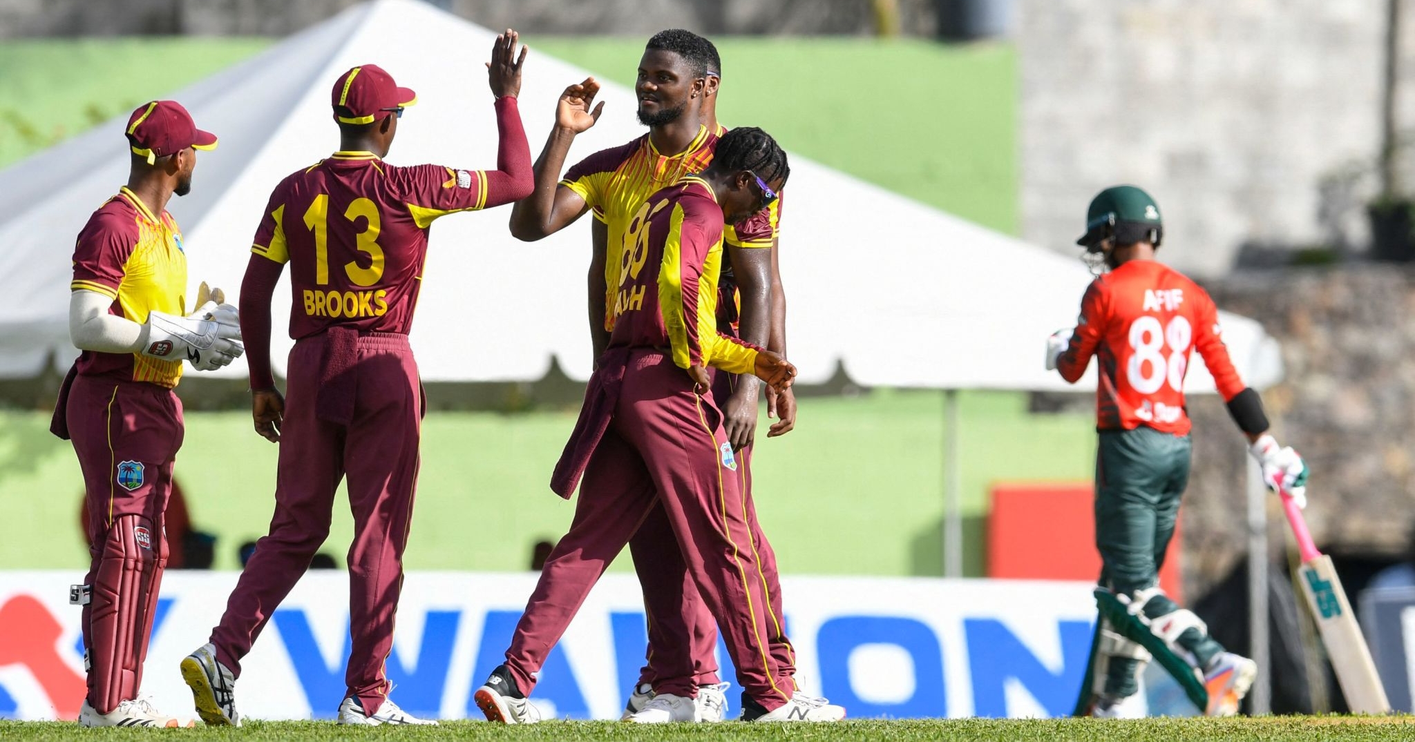 কিন্তু শেষ পর্যন্ত পুরান ও কাইল মেয়ার্স এর ঝড়ো ব্যাটিংয়ে ম্যাচটি ছিটকে যায় বাংলাদেশের হাত থেকে। মেয়ার্স ৩৮ বলে ৫৫ রানের ইনিংস খেলেন, হাঁকান পুরানের সমান ৫টি ছক্কা। চতুর্থ উইকেটে ৮৫ রানের জুটি গড়েন পুরান ও মেয়ার্স। এছাড়া বাংলাদেশের পক্ষে নাসুম আহমেদ ৪৪ রানের বিনিময়ে দুটি উইকেট পান।